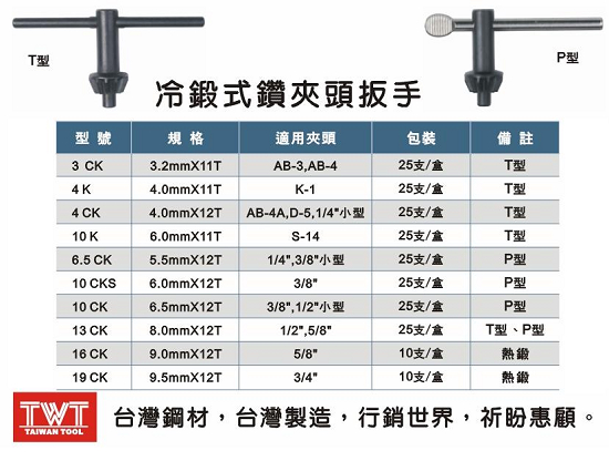 冷锻式钻夹头扳手