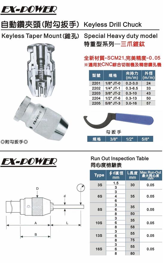 EX-POWER 自动钻夹头(附勾扳手)