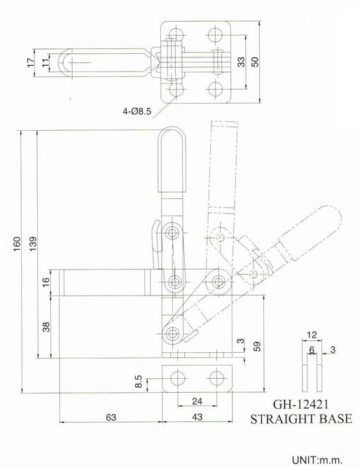夹持力:150kg 自重;320g 把手移动;45? 压把移动;94? 附件;GH-SA-085012