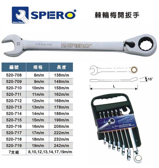 棘轮梅开扳手 8m/m~19m/m